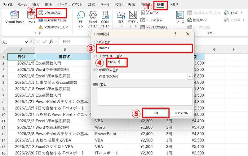 マクロの記録方法